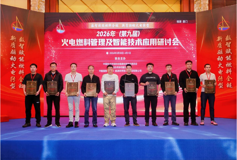 ▲ 在2026年(第九屆)火電燃料管理及智能技術應用研討會頒獎現(xiàn)場,湖北能源新疆楚星公司榮獲科技成果二等獎。圖為潘巖代表(右一)上臺領獎。(圖片由受訪者提供)