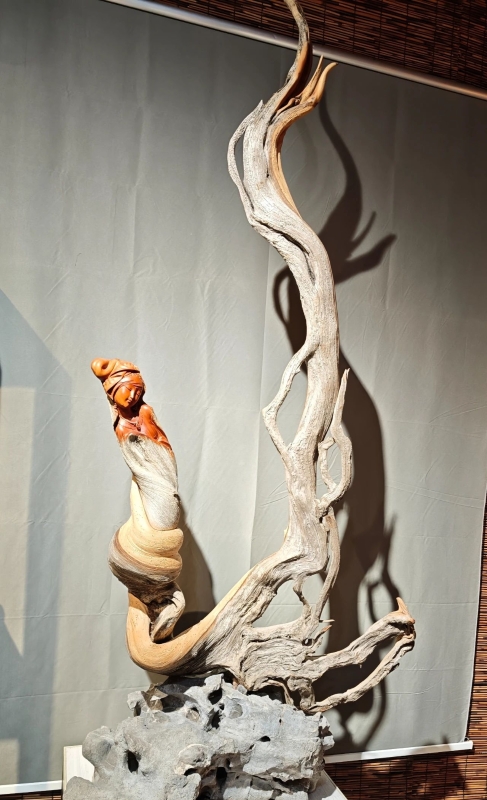 同樣“駐扎”牛扎坪花木城的,還有從事木雕工藝的董國周,“這個作品我個人很喜歡,有客人出價4500元,我沒舍得賣。做木雕是慢工出細活,產量雖低,但不愁賣。”他指著一個木雕說道。