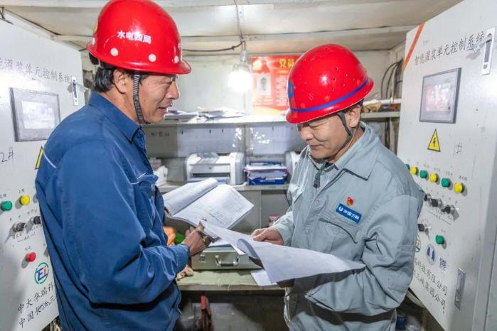 ▲全國勞動模范王克祥(右)是白鶴灘施工區“水電鐵軍”的代表 攝影:張勇