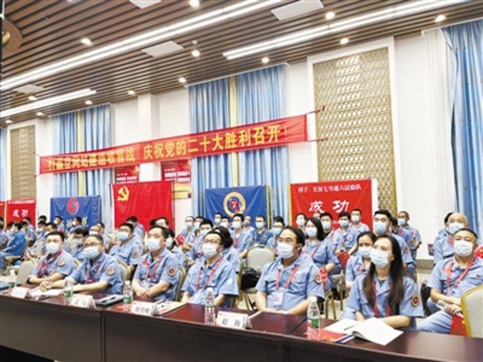 上午10時,航天科技集團一院長征五號B、長征七號、長征二號F三支火箭發(fā)射隊全體隊員各自集結(jié),集體收看黨的二十大開幕盛況。