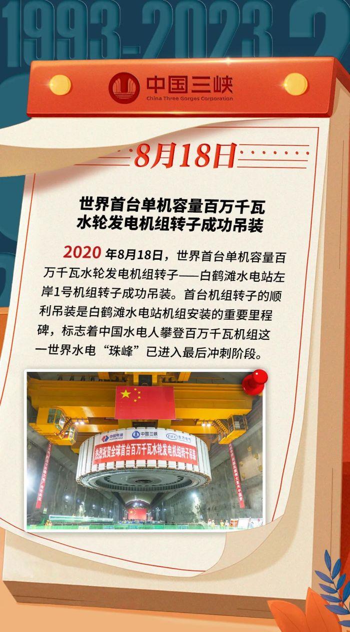 三峽 · 歷史上的今天丨世界首臺單機容量百萬千瓦水輪發(fā)電機組轉(zhuǎn)子成功吊裝(8月14日-8月20日)