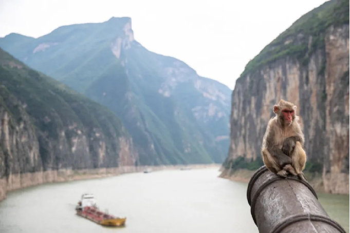 ▲?在重慶市奉節(jié)縣瞿塘峽拍攝的猴子。攝影:新華社記者 儲加音