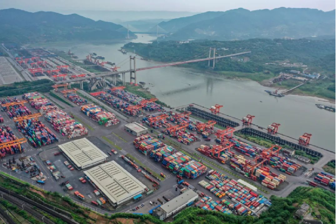▲?位于長江重慶段的果園港,是我國內(nèi)河最大的水鐵公多式聯(lián)運樞紐港。從小碼頭到長江上游最大港口,果園港向著更快捷、更智慧、更綠色快速“奔跑”,逐漸蛻變成為成渝地區(qū)雙城經(jīng)濟(jì)圈開放門戶和長江上游聯(lián)通世界的“中轉(zhuǎn)站”。攝影:新華社記者 唐奕