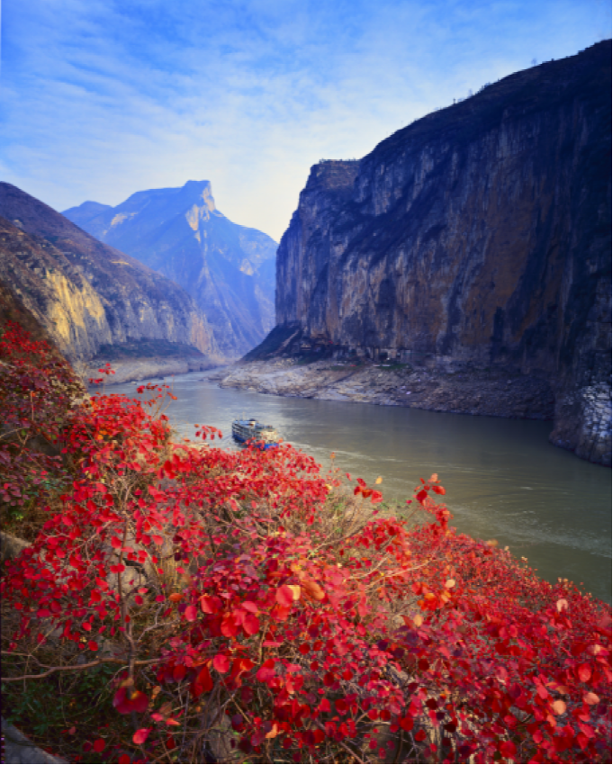 溝通巴蜀與中東部的長江上游段,俗稱川江,或稱蜀江,一般指四川宜賓至湖北宜昌之間的河段,全長約1030公里。重慶以上的370公里為上川江,重慶以下的660公里稱為下川江,下川江流經(jīng)丘陵和高山峽谷地區(qū)落差120米的三峽地區(qū),因兩岸山巒夾峙,水流急湍,所以又有“峽江”之稱。詩圣杜甫詩云——“高江急峽雷霆斗,古木蒼藤日月昏”,描繪的就是三峽的險峻。