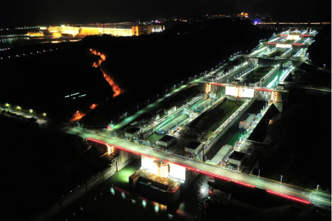 ▲?三峽雙線五級船閘夜景? 攝影:湯偉